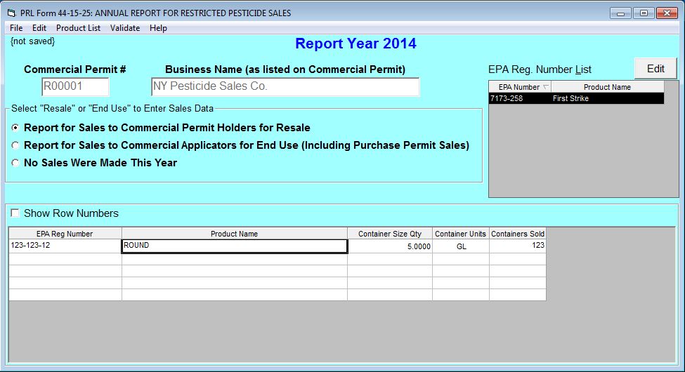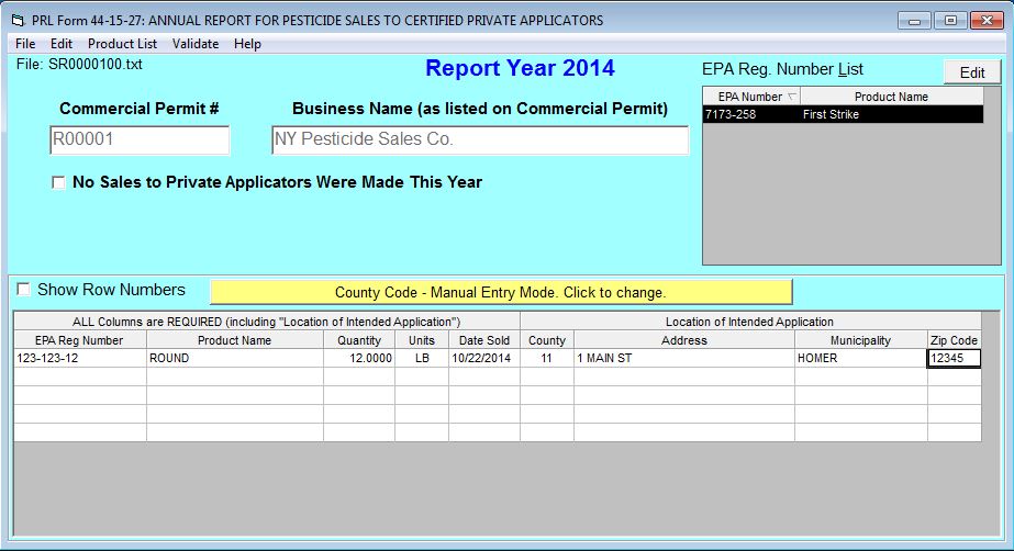 The PRL report forms are where you will enter the data that you need to report to the NYSDEC. Each form is used to report a particular type of pesticide-related activity.